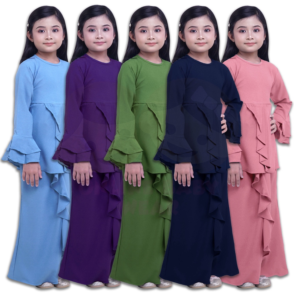 Baju Kurung Peplum Ruffles 1y 12y 5 Colors Part 2 Navy Blue Dark Purple Baby Blue Olive Green Dusty Pink Crepe Shopee Singapore
